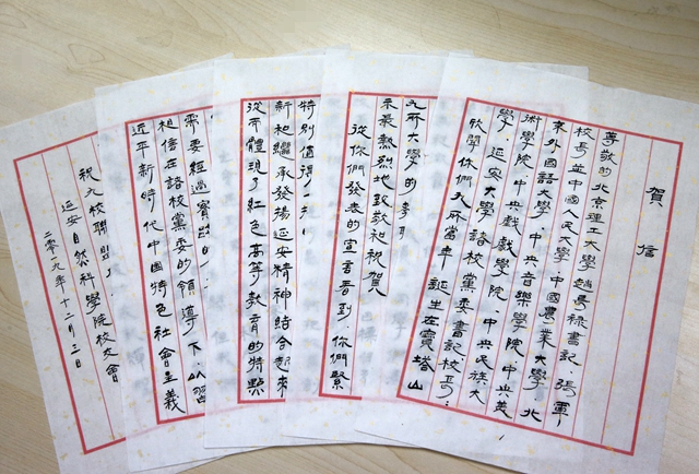 老校友在贺信中提到,bb贝博艾弗森官方网站、中国人民大学、中国农业大学、北京外国语大学、中央音乐学院、中央美术学院、中央戏剧学院、中央民族大学、延安大学等九所当年诞生在宝塔山下、延河之滨的高校,在首都北京共同发布了延河高校人才培养联盟宣言,原延安自然科学院校友会在京的同学们感到十分高兴,向九所大学的教职员工、同学们表示最热烈的致敬和祝贺。