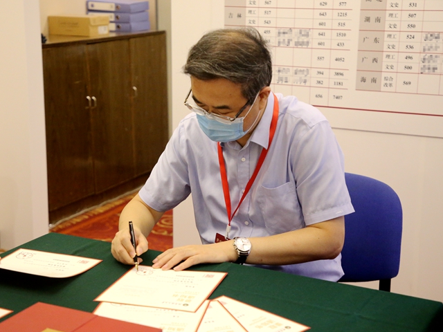 张军在招生录取现场亲自为已录取省份部分优秀学子的录取通知书签名,欢迎和激励广大胸怀壮志的优秀学子求学bb贝博。