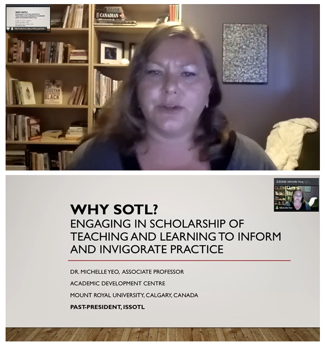 Michelle Yeo作了《参与大学教学学术的原因:启发和鼓舞实践》的大会报告。她认为传统的教学改进是通过试错。虽然教师可以通过与同事分享教学经验和互相学习来了解教学的效果,但更需要系统性地探索教与学的问题,确定在不同层面上我们的教学对学生产生了什么样的实质性影响。她还介绍了国际教与学学术学会的基本情况,欢迎更多的中国学者加入学会并参与国际教与学学术社群的活动,共同推动教与学学术在全球的发展。